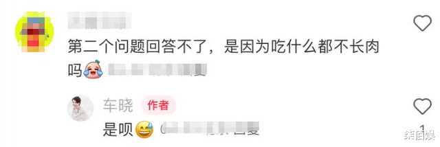 而对于这么瘦的车晓有网友就担心她是不是生病了,为此,车晓在视频中还回应过,她表示这个问题回答不了。而从她在评论区与网友互动来看,车晓并没有生病也没有故意减肥,就是吃什么都不长肉,干吃不胖体质还真是令人羡慕。